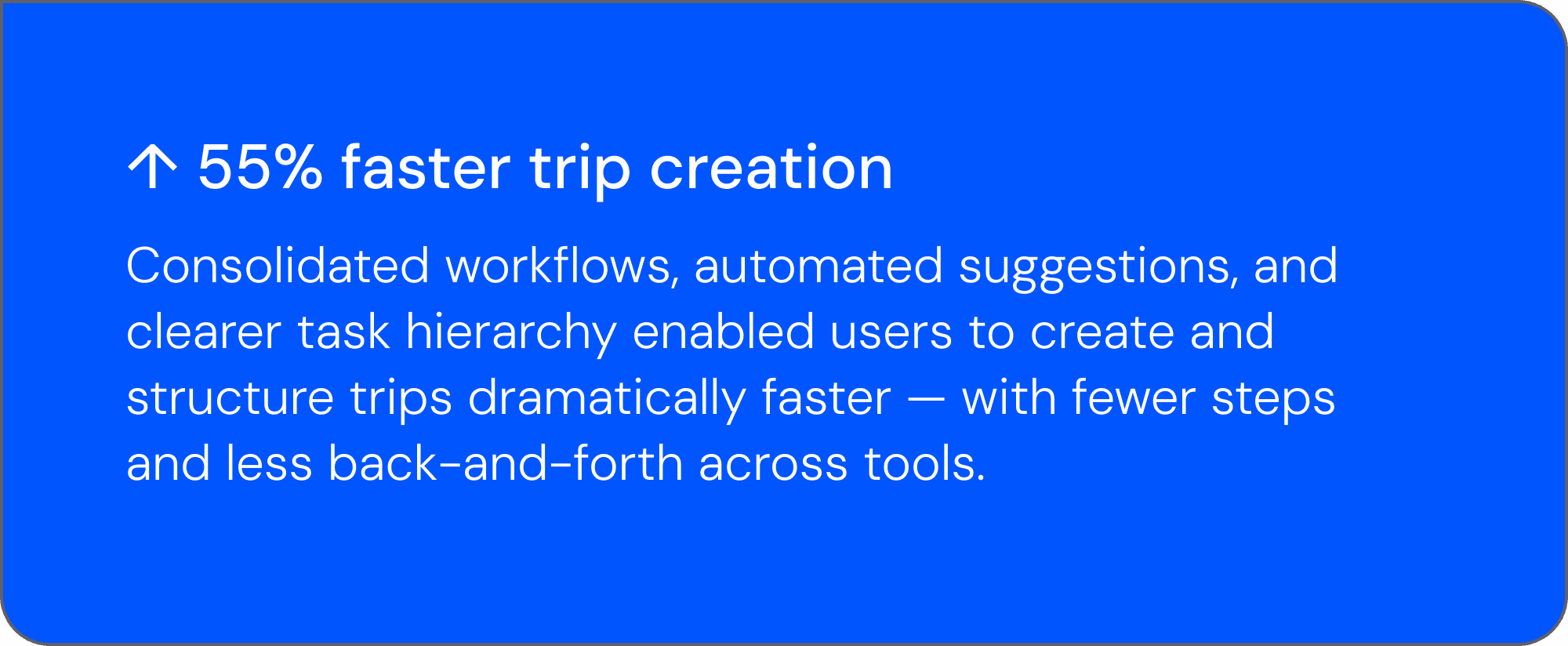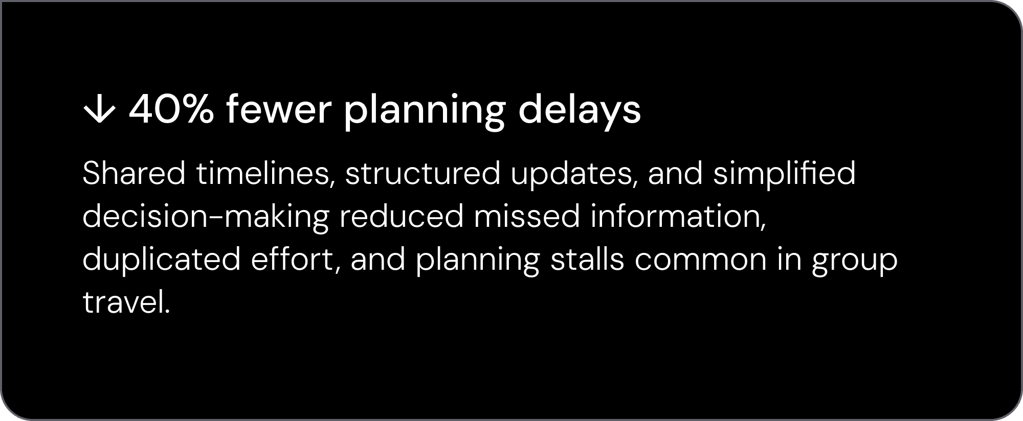 Early usability checkpoints allowed us to identify friction early, reduce redesign effort, and ensure the product felt intuitive for both planners and travelers.