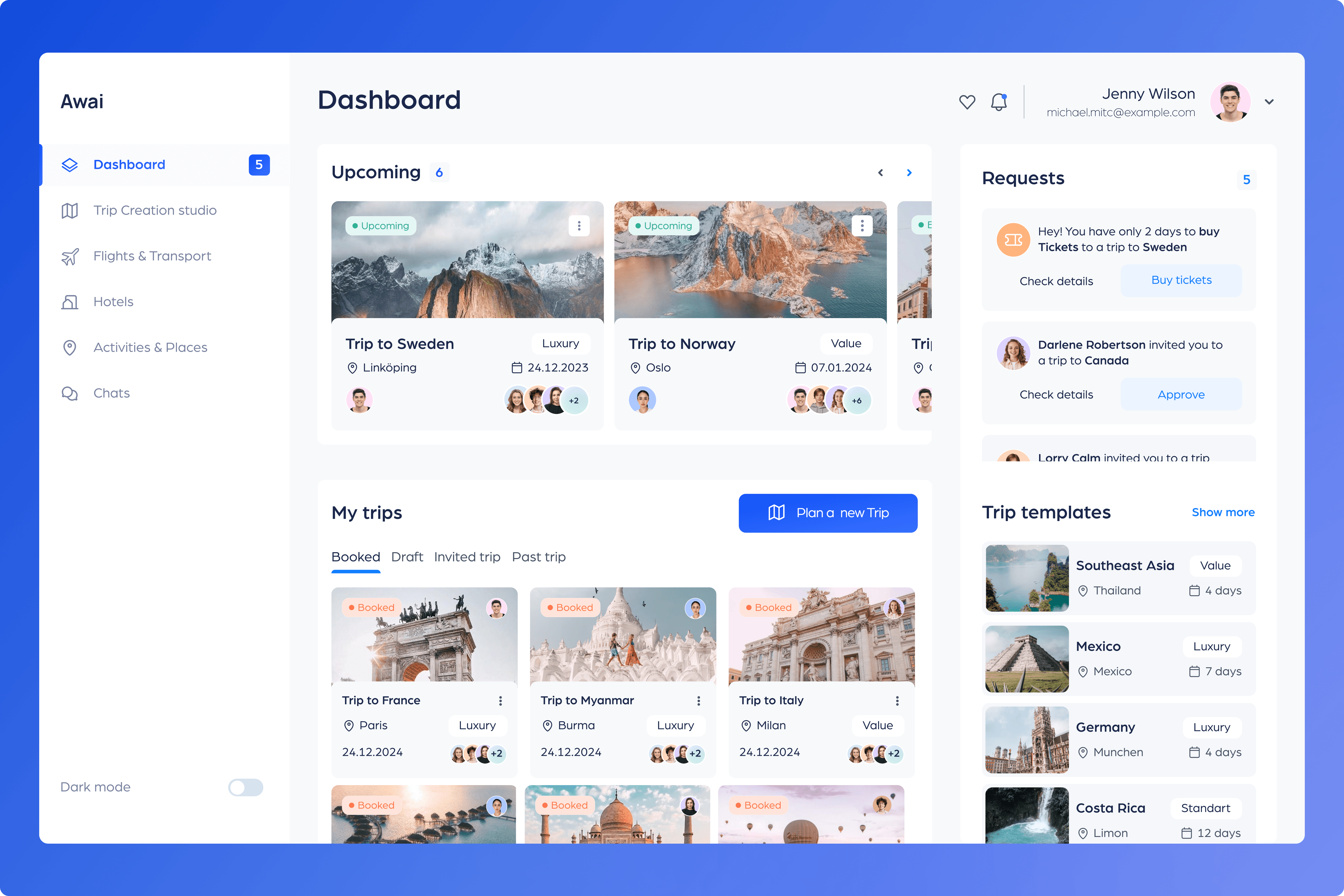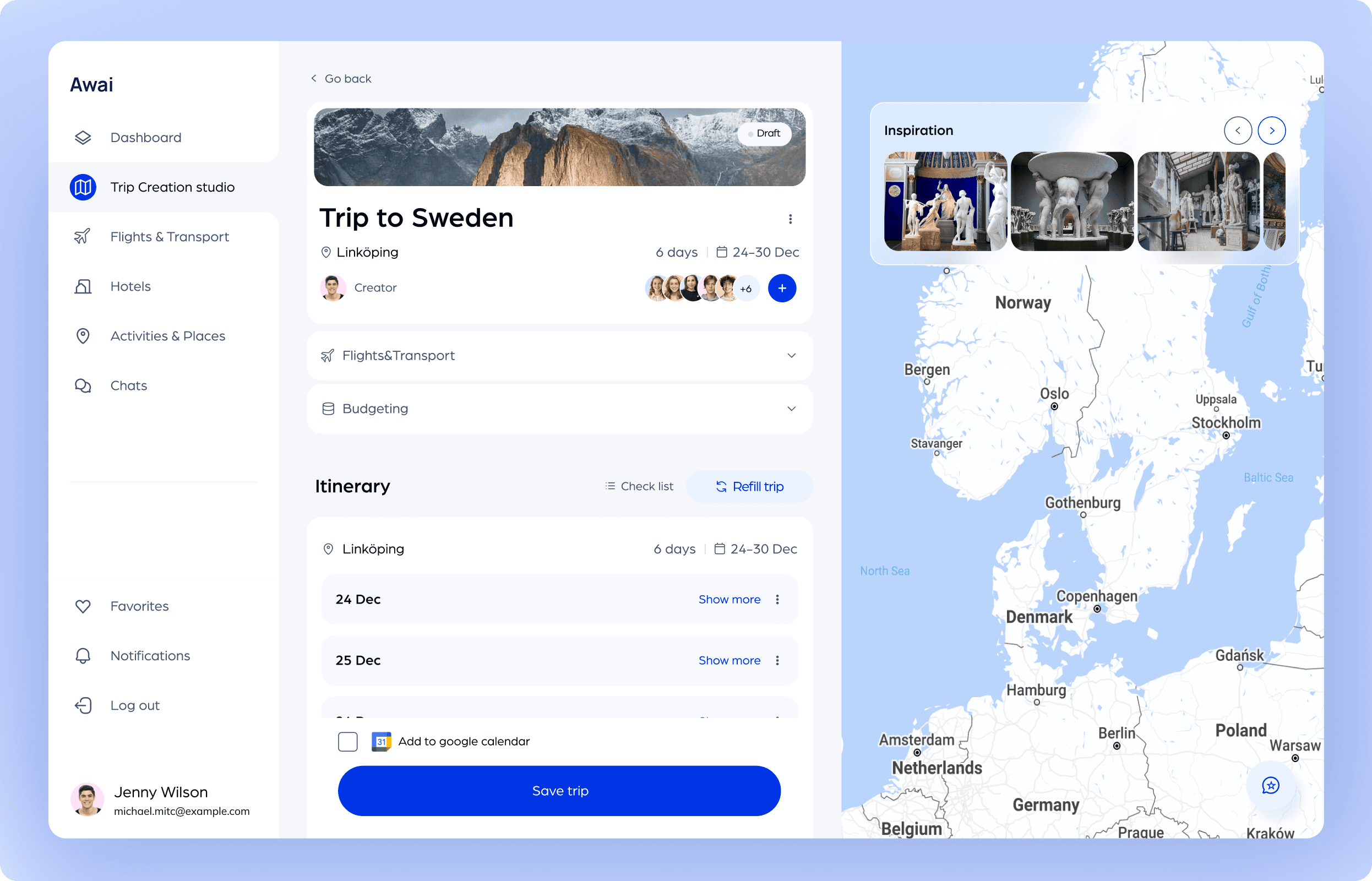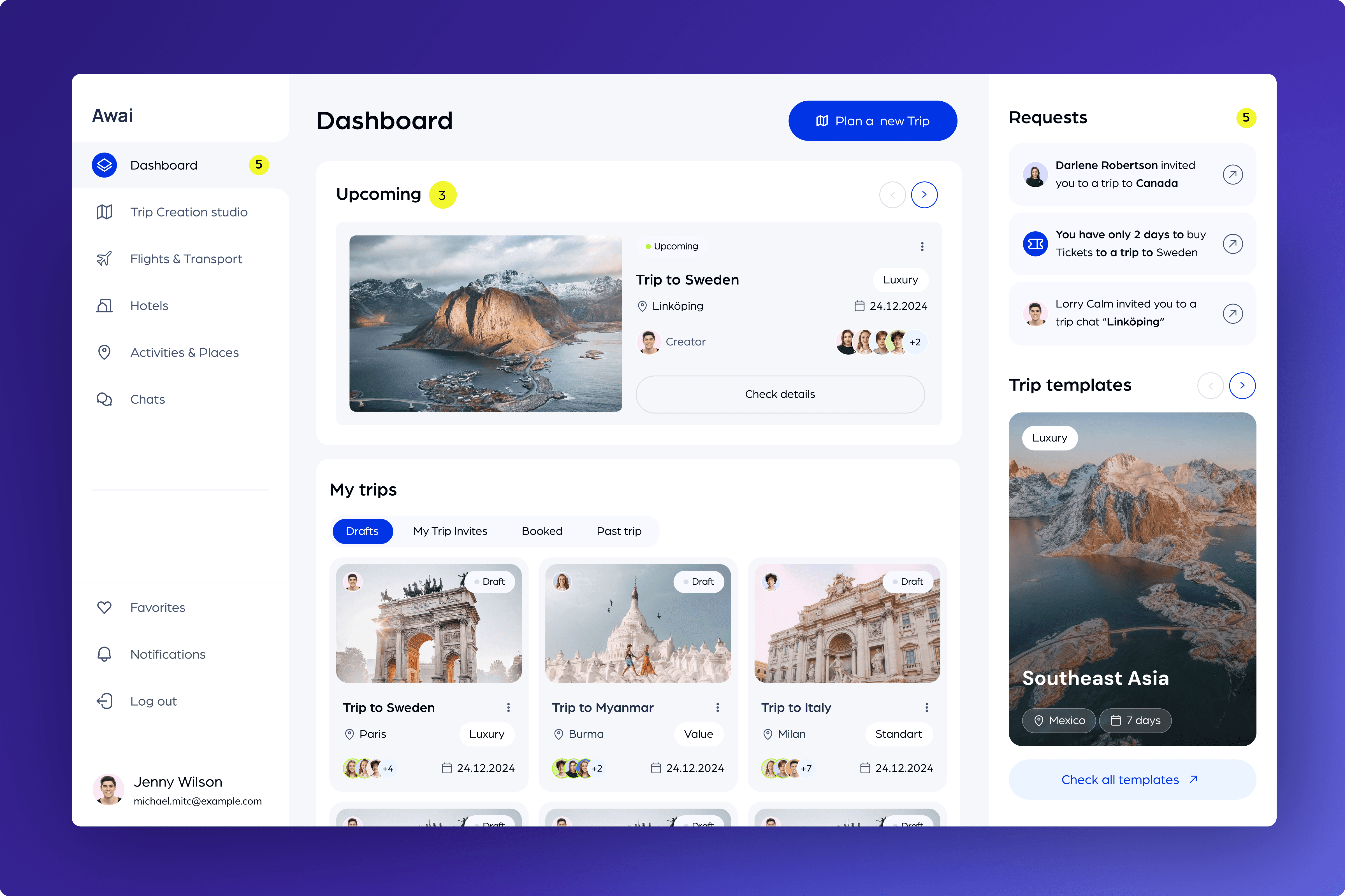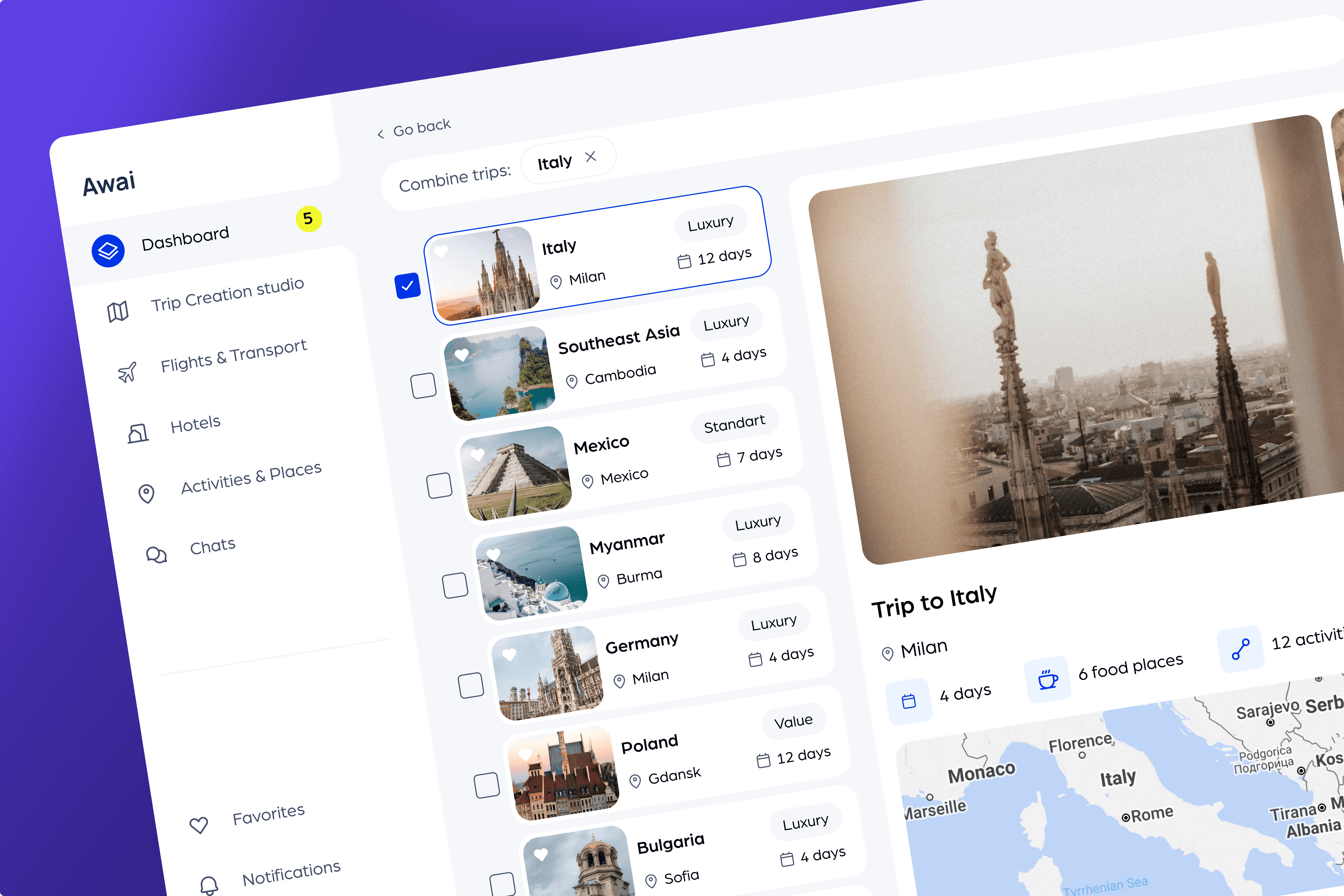 Awai Travel needed a scalable web platform that simplifies group travel — from initial planning to budget tracking and activity scheduling — while reducing the organizational burden on trip creators.