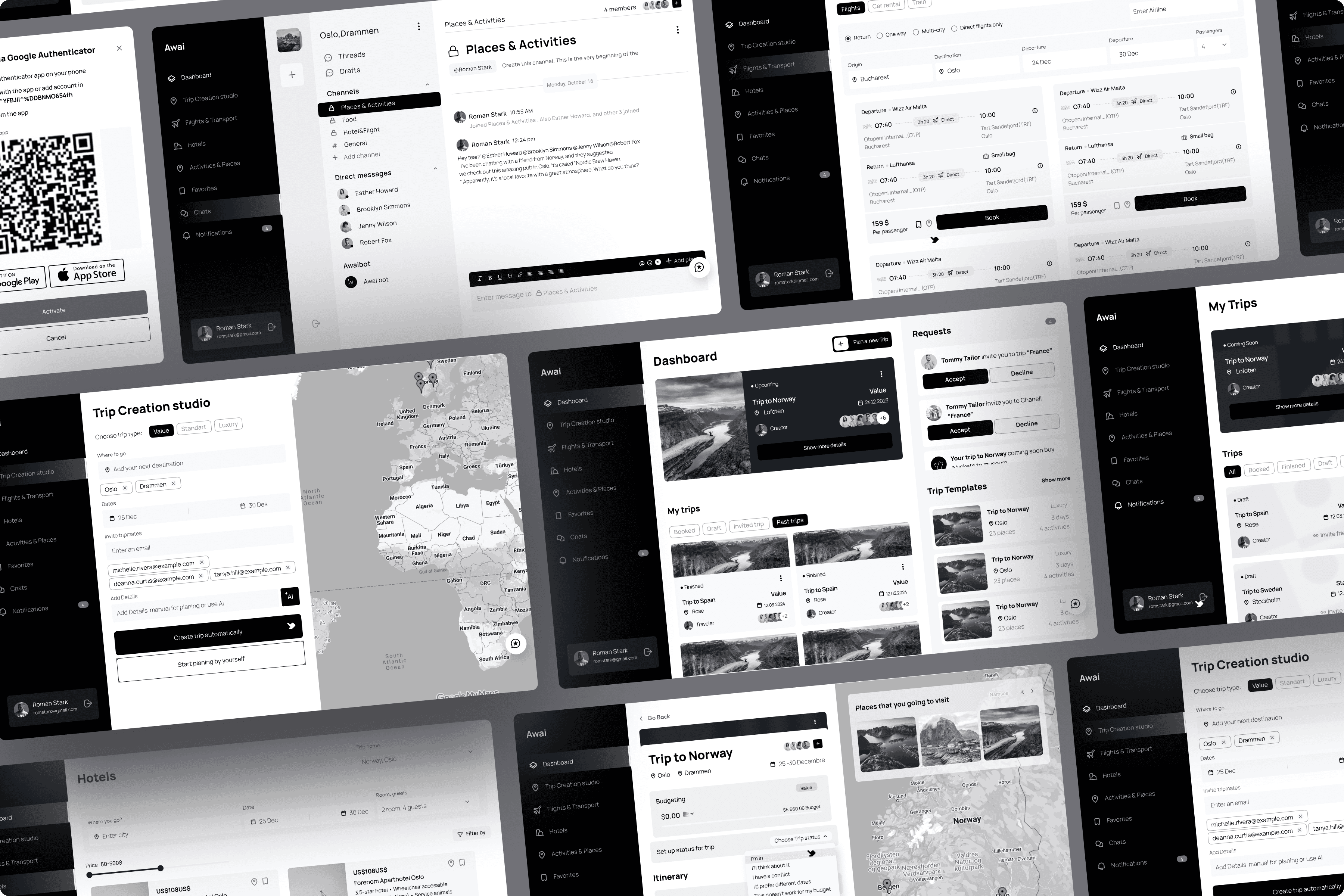 By the end of this phase, we established a cohesive, travel-centric visual language aligned with Awai’s values — clarity, collaboration, calmness, and modern simplicity.