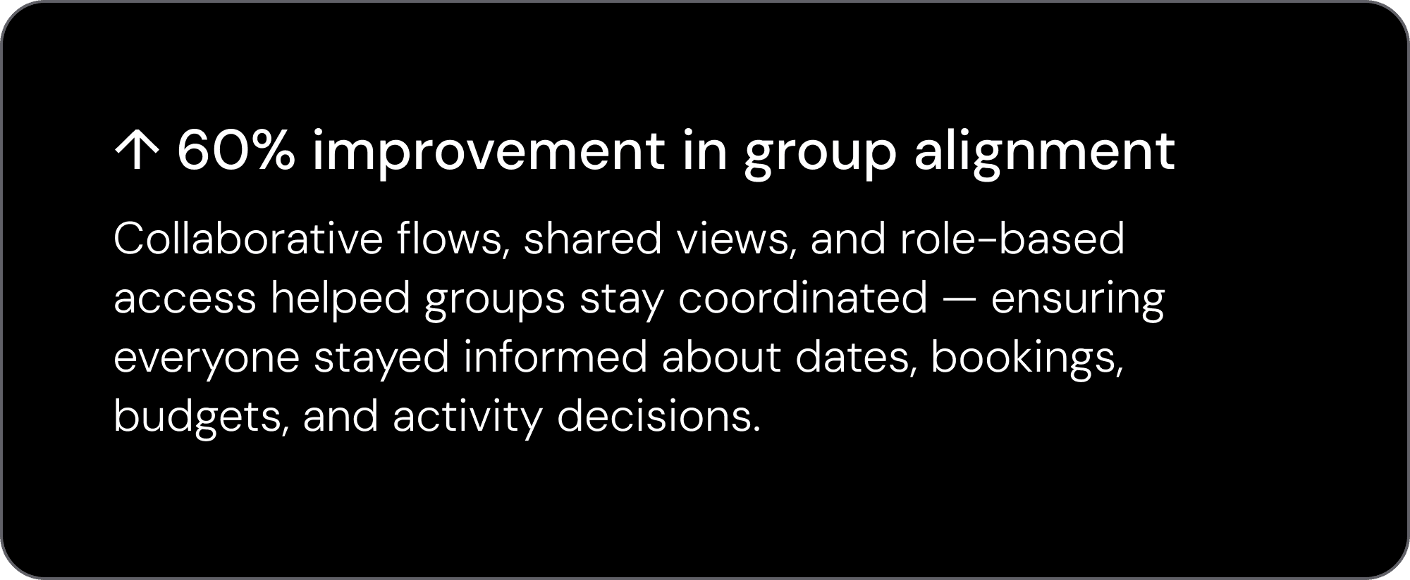 The outcome is a user-ready platform that simplifies group travel planning, reduces coordination friction, and provides a strong foundation for future feature growth.