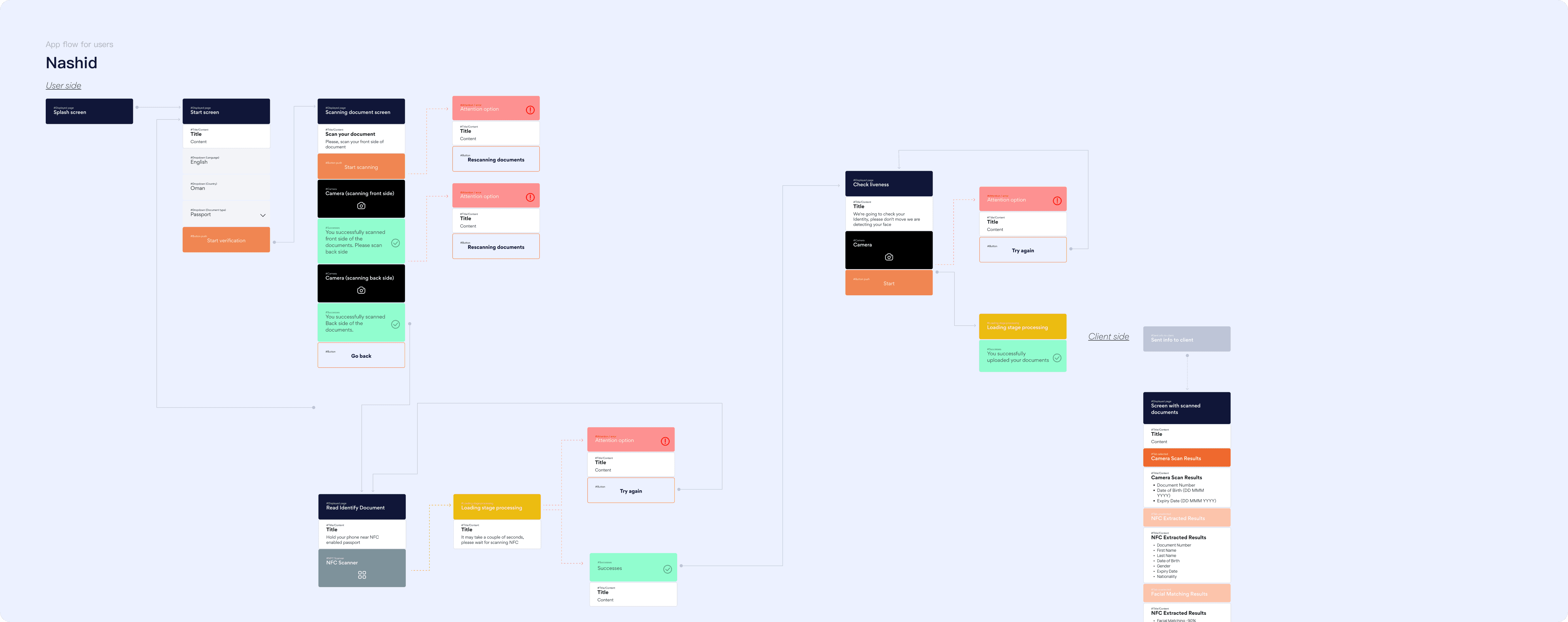 Through competitor benchmarking, UX audits of the current mobile flow, and collaborative sessions with the product + engineering teams, we uncovered friction across document scanning, NFC reading, selfie capture, and error-recovery steps.