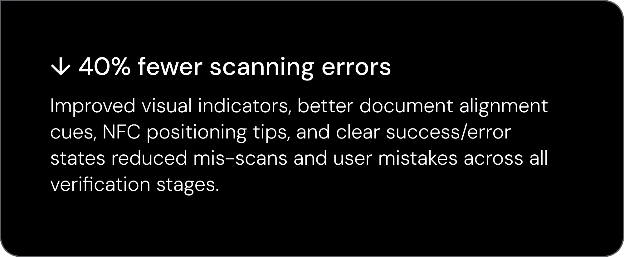 This project delivered a clearer, more predictable, and significantly more reliable identity-verification experience for Nashid — reducing scanning failures, improving completion rates, and strengthening user trust.