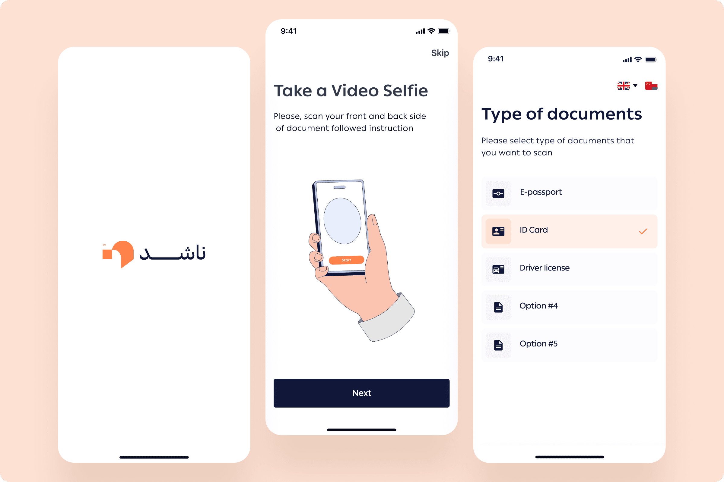 We redesigned Nashid Verify into a fast, reliable identity verification product used by banks, telecoms, and enterprise partners. The new onboarding flow unifies document scanning, NFC chip reading, and biometric selfie checks into one seamless journey — supported by motion-based guidance, clearer instructions, and a modern, scalable UI ready for integration across B2B platforms.