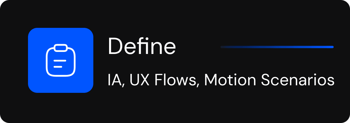 I translated the IA into predictable interaction patterns and collaborated with a motion designer to create: